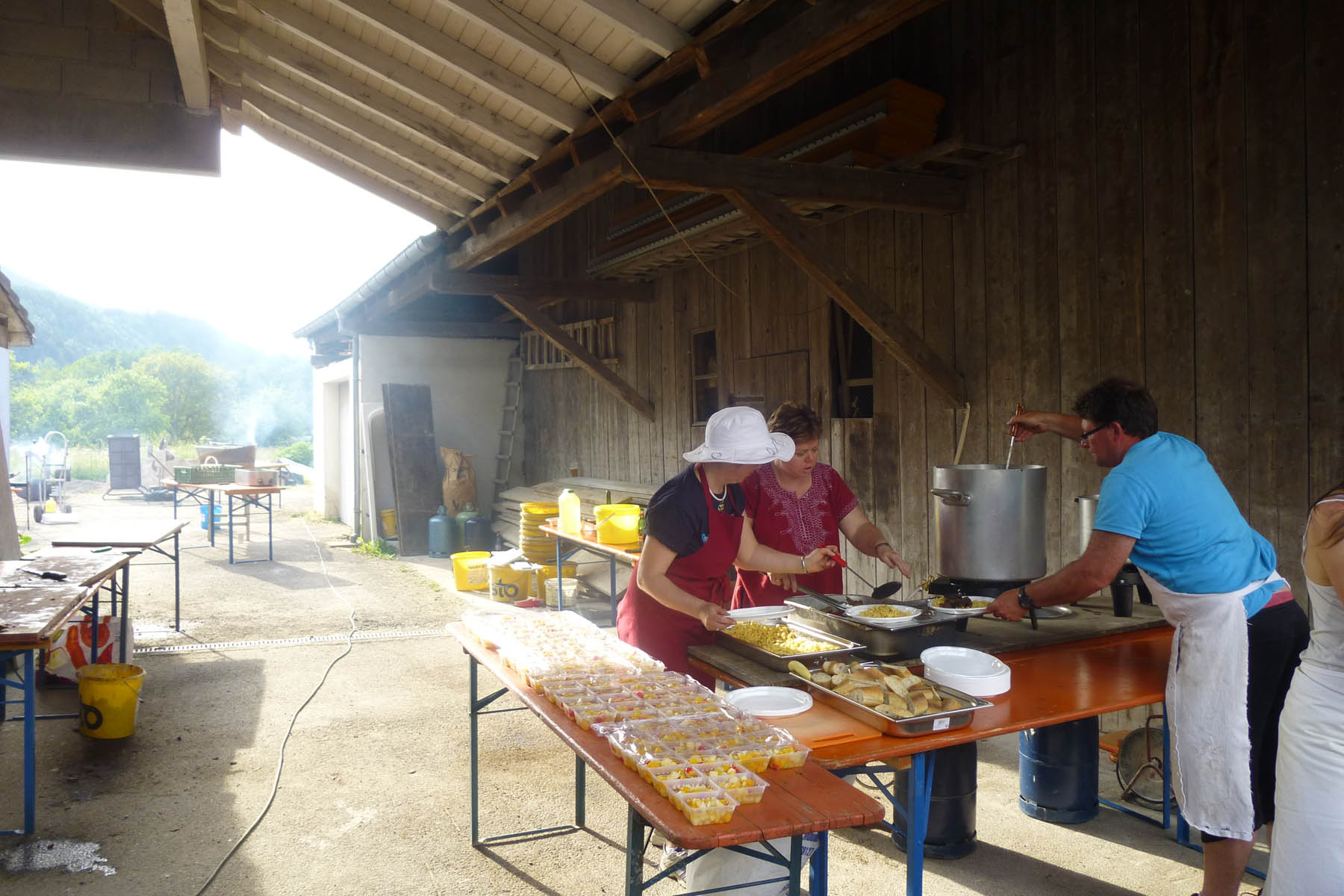 Today began with two shorter 4-8 minute stages, one fast through the meadows (need to stop braking, lost far too much time on the easy parts!) and the other through the woods with some slightly greasy rocky parts after dramatic thunderstorms overnight (scary listening to the sky explode as I lay in my tent, not much sleep either!). I messed up on one of the rocky drops trying to get around someone who had stopped at the top and ending up running down, I probably lost a minute so bang went my chances of the podium – a small mistake can cost you so much in these things! The last stage was longer with more fun forest trails and a couple of pretty long uphills that left you full of lactic and gasping for breath, before again finishing in the village for more traditional French food and beer. Enduro racing might be worth all the hype!