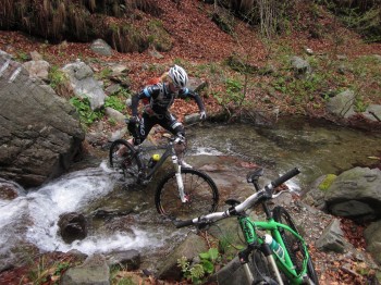Day 1 didn’t quite follow the weather forecast and was a bit of an adventure with a monster steep long climb up to 1400m, river crossings, hike-a-bike, riding in the clouds, mud and rain, a fast fun descent, soaking wet kit, an enforced coffee and lunch stop due to gigantic thunder and lightening storms, a more sheltered xc ride, more rain, hail stones, more wet kit and finally a well deserved Italian pizza.