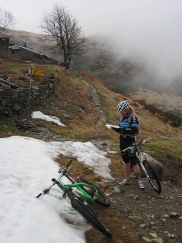 Just as we thought summer had arrived the weather made a dramatic return to snowy winter timed perfectly with Easter weekend. The solution? head south and chase the sun! Fellow Irish exile Fiola Foley and I had a road trip to Ticino for some big-mountain biking. When you pass through the Gothard tunnel everything breathes a sigh of relief and relaxes, the buildings are colourful and disordered, the weather sunny and snow-free, the language and food Italian – only the Swiss francs and the incessant ringing of church bells confirm that you’re still in Switzerland.